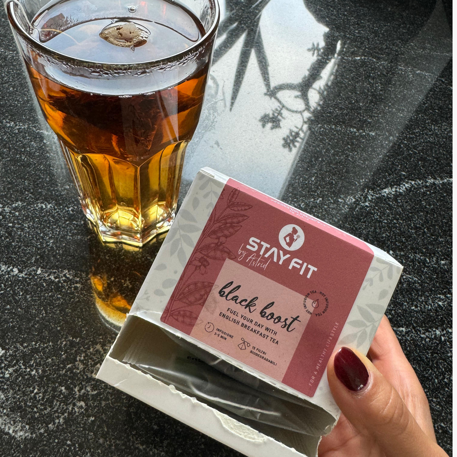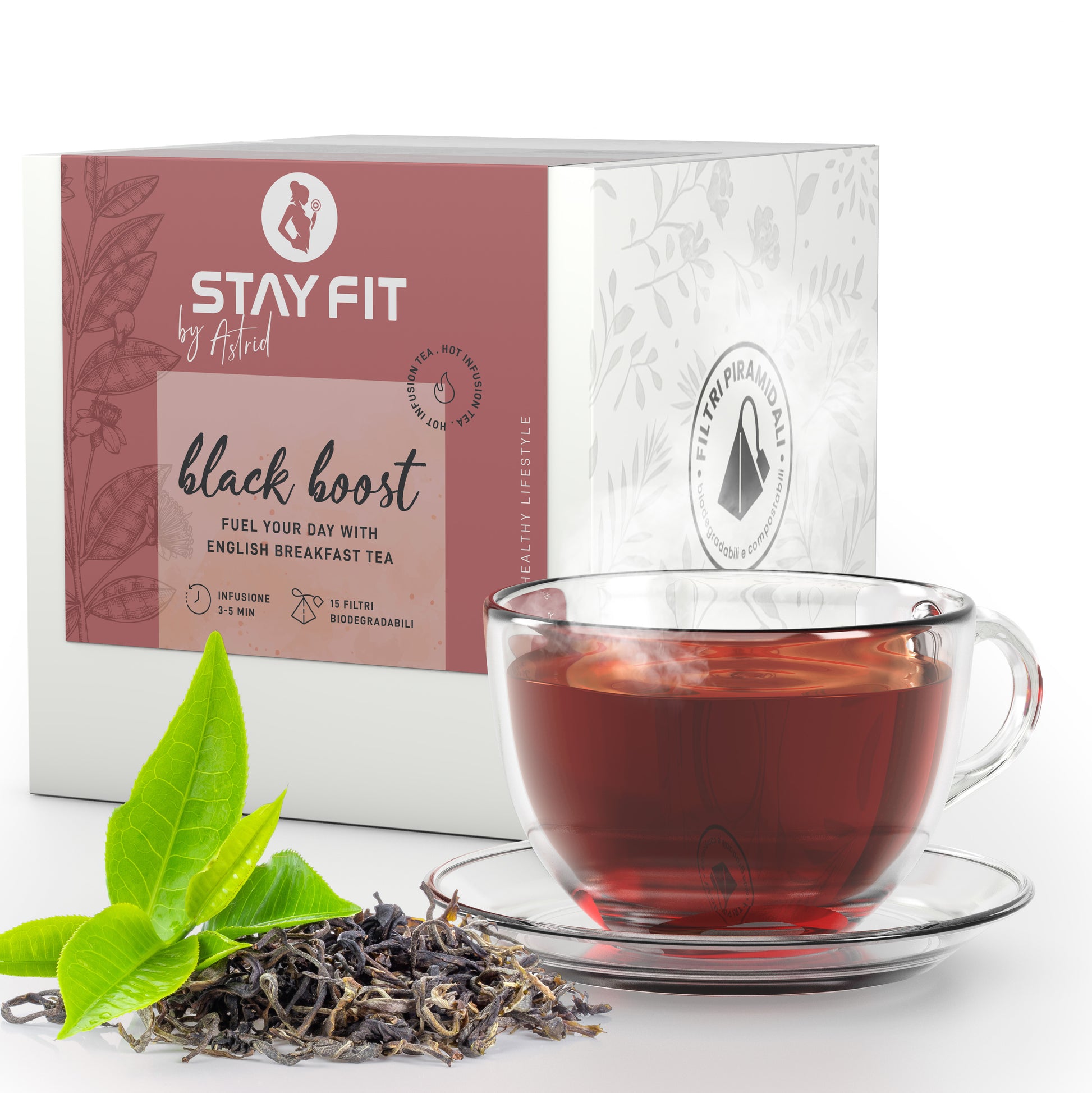 Der STAY FIT Black Boost ist ein klassischer English Breakfast Schwarztee – kräftig im Geschmack, klar in der Wirkung.